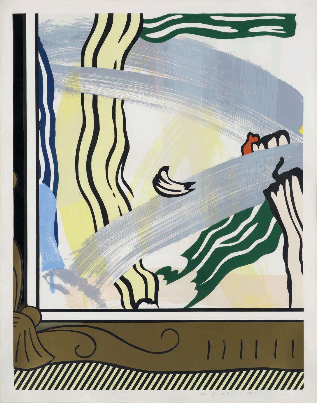 427. Roy Lichtenstein (USA, 1923–1997) “Painting in Gold Frame”. Signed in pencil and numbered 2/60. Woodcut, lithograph, screenprint and collage, 1984. Printed and published by Gemini G.E.L., Los Angeles. I. 109.7 x 83.7 cm. S. 117.4 x 91.3 cm.