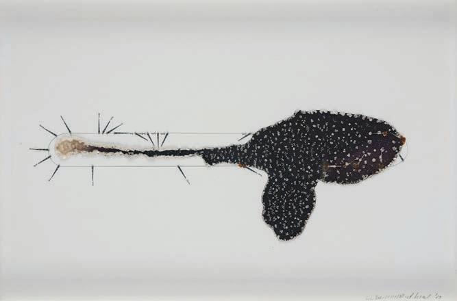 Signed in pencil and numbered 65, with an incorrect edition number 99 (should be 100). Colour lithograph and collage (textile and thread), 1988. Published by Poligrafa, Barcelona. S. 70.5 x 55.4 cm.