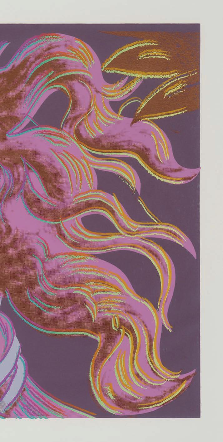 The highlight of the series is Warhol’s variations on Sandro Botticelli’s The Birth of Venus (1485–86). By cropping and isolating the goddess from her original mythological context, Warhol emphasizes her face and flowing hair as timeless symbols of beauty. His Venus becomes not only a Renaissance deity, but also a contemporary icon with the aura of a Hollywood star.
