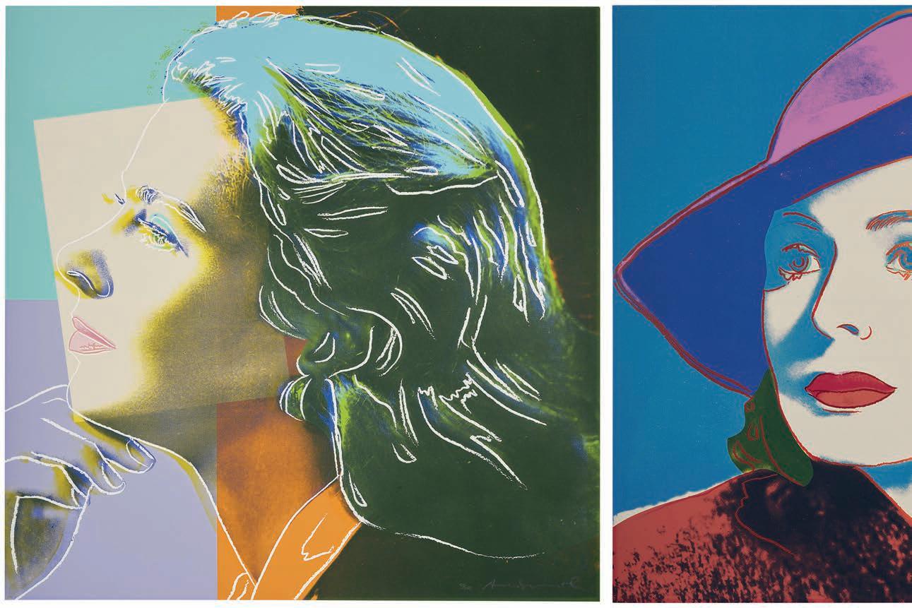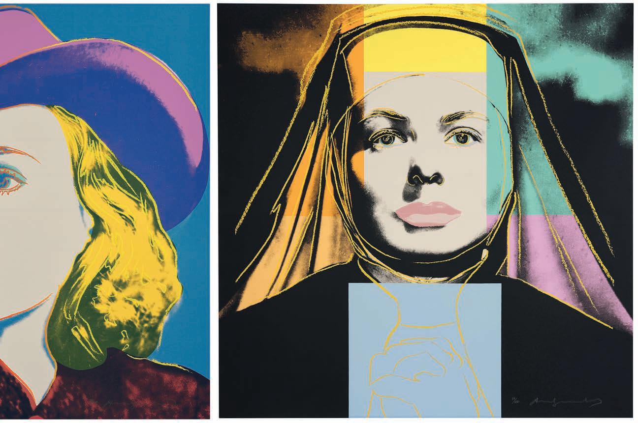 442. Andy Warhol (USA, 1928–1987) “Three portraits of Ingrid Bergman by Andy Warhol”. The complete portfolio of three screenprints in colours, 1983, each signed in pencil and numbered 55/250. Printed by Rupert Jasen Smith, New York. Published by Galerie Börjeson, Malmö. S. 96.4 x 96.5 cm. Certificate from Galerie Börjeson is included in this lot.