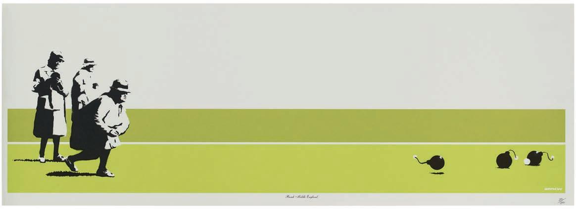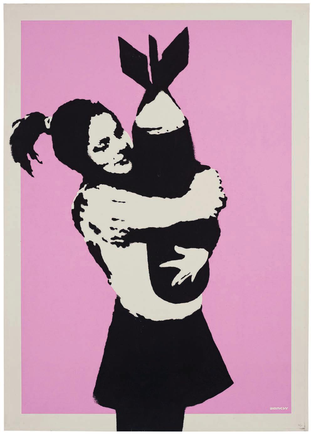 410. Banksy (Great Britain) “Bomb Hugger” (Bomb Love). Signed in the print. Numbered 165/600 in pencil. Screenprint in colours 2003–2004. Published by Pictures on Walls, London. S. 69.5 x 49.5 cm. Certificate from Pest Control accompanies this lot.