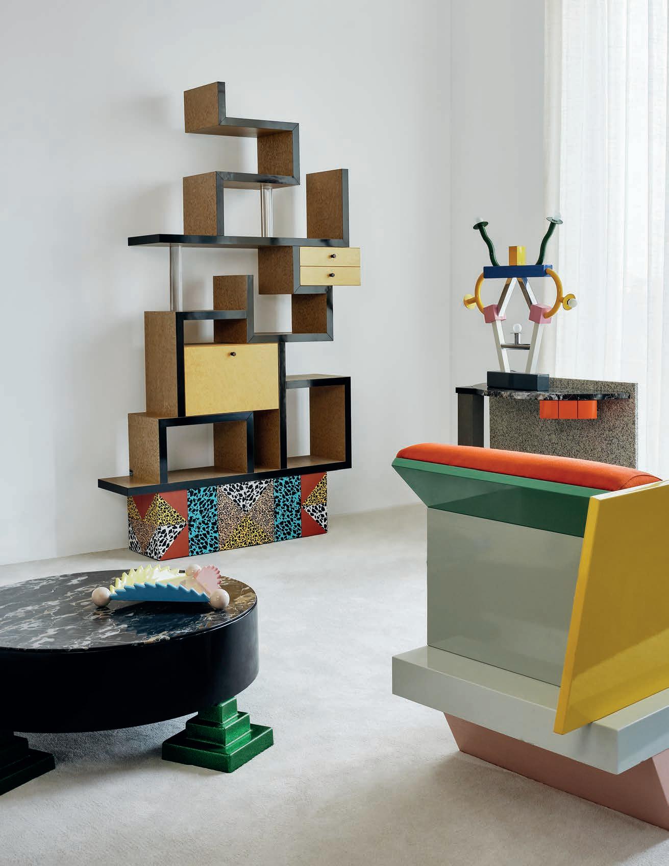 A piece of Memphis furniture is a linguistically controlled assembly whose final form is not the result of a design story held together by constructive coherence, but a milkshake of possibilities, an accident that represents the variable and unstable logic of the parts that compose it: volumes broken into different kinds of surfaces, fragmented by decoration and diversified by textures, materials and color.