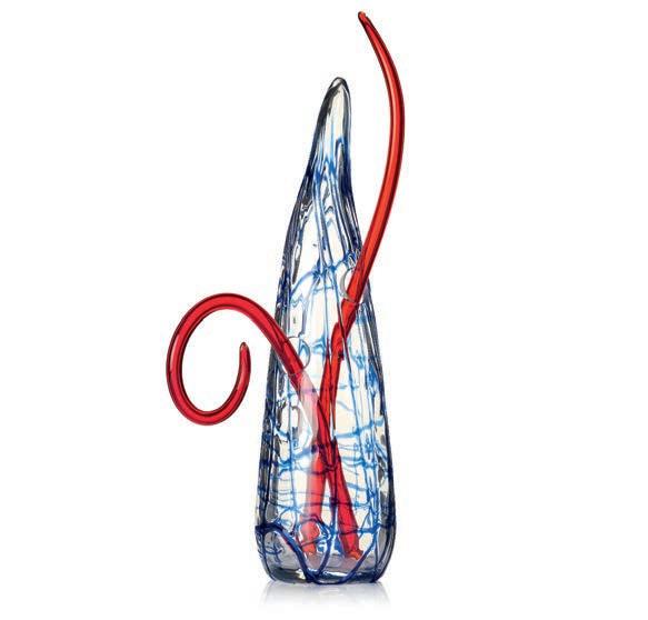 Clear glass with blue decoration, loose red glass rods, signed A ANASTASIO PER MEMPHIS EXTRA. Height 46.5 cm.