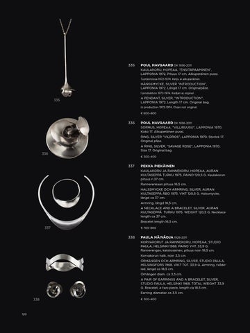 PAULA HÄIVÄOJA 1928-2011 KORVAKORUT JA RANNEKORU, HOPEAA, STUDIO PAULA, HELSINKI 1968. PAINO YHT. 33,9 G. Rannerengas, kaksiosainen, pituus noin 18,5 cm. Korvakorun halk. noin 3,5 cm. ÖRHÄNGEN OCH ARMRING, SILVER, STUDIO PAULA, HELSINGFORS 1968. VIKT TOT. 33,9 G. Armring, tvådelad, längd ca 18,5 cm. Örhängen diam. ca 3,5 cm. A PAIR OF EARRINGS AND A BRACELET, SILVER, STUDIO PAULA, HELSINKI 1968. TOTAL WEIGHT 33,9 G. Bracelet, a two-piece, length ca 18,5 cm. Earring diameter ca 3,5 cm.
