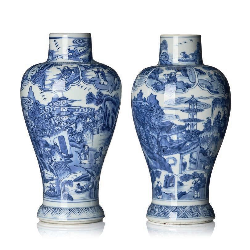 1353. A pair of blue and white ‘Genever’ bottles, Qing dynasty, Kangxi (1662–1722).