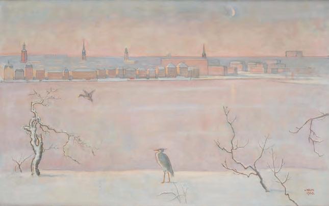 skala liknande auktionens målning. Jonson skulle gång på gång återkomma till detta koloristiska uttryck och sällar sig på så vis i viss mån till skaran av svenska ”blåmålare”. Dessa blå kompositioner från åren kring 1930 är sällsynt förekommande på auktion.