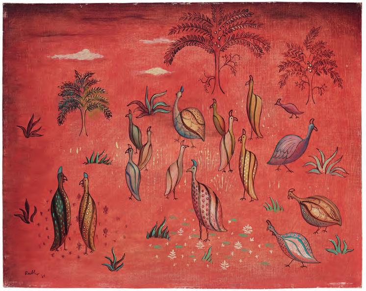 922. Alexis Preller (Sydafrika, 1911–1975) Pärlhöns. Signerad Preller och daterad -52. Duk lagd på masonit, 36 x 45 cm.