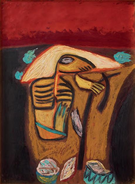 783. Sigrid Hjertén (Sverige, 1885–1948) Tänkande kvinna. Stämpelsignerad Hjertén samt a tergo intygad av Rakel Grünewald. Blandteknik på papper 37,5 x 27 cm.