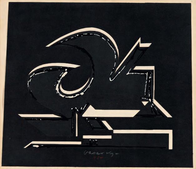 923. Henri Sert (Frankrike/Sverige, 1938–1964) Utan titel. Signerad H. Sert och daterad 1961. Blandteknik på papper 98 x 68 cm.