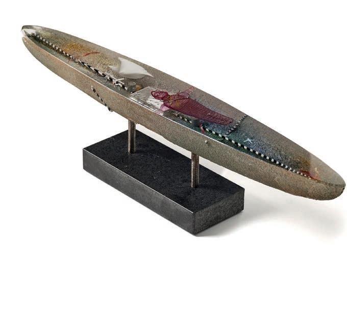 18. Bertil Vallien (Sweden, 1938–) a unique “Voyage XVII” sand-cast glass sculpture of a boat, Kosta Boda.