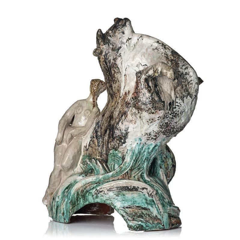 58. Berndt Friberg, a stoneware vase, Gustavsberg Studio 1967. 73. Lisa Larson, a unique stoneware sculpture, Gustavsberg Studio circa 1960.