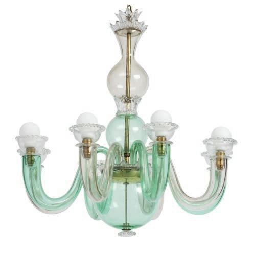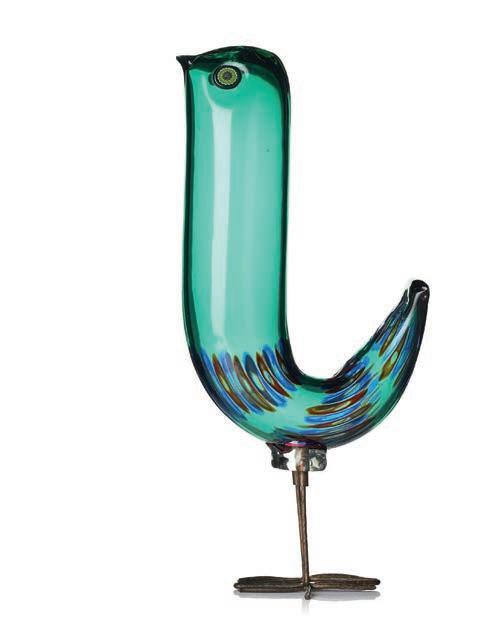 29. Alessandro Pianon (Italy, 1931–1984) a “Pulcino” glass sculpture of a bird, Vetreria Vistosi, Italy, 1960s. Green glass with decoration in blue and green, eyes in murrine, legs of copper. Height 31 cm.