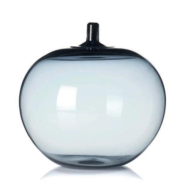 Grey-blue underlay, signed ORREFORS Expo D 9–57 Ingeborg Lundin. Height 29.5 cm, diameter approx. 30.5 cm.