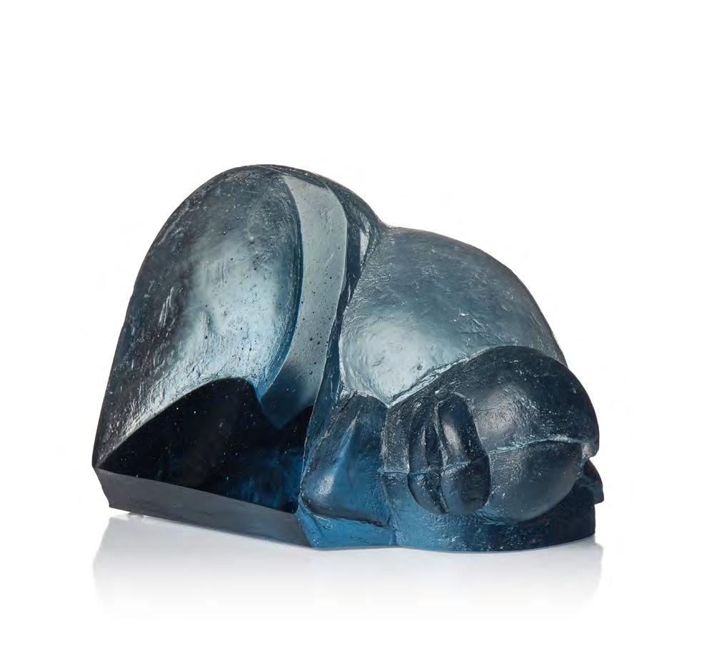5. Ann Wolff (Sverige, 1937–) skulptur, egen studio Gotland, edition 3/5. Akvamarinblått gjutet glas med motiv av ett ansikte, signerat Ann Wolff 3/5. Längd 27 cm, höjd 19 cm.