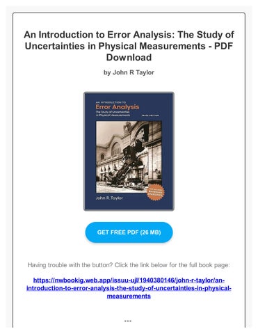 "GetthePDFversionoftheentirebookAnIntroductiontoErrorAnalysis: TheStudyofUncertaintiesinPhysicalMeasurementsbyJohnRTaylorin PDFformatforfree."