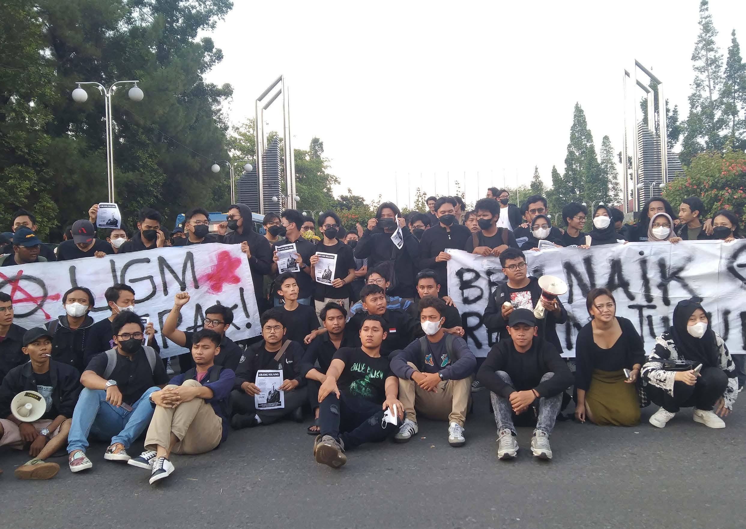 Hajatan di jalan, tapi yang pu nya hajat nggak datang. Ma hasiswa UGM dalam aksi tolak kenaikan harga BBM (12/9).