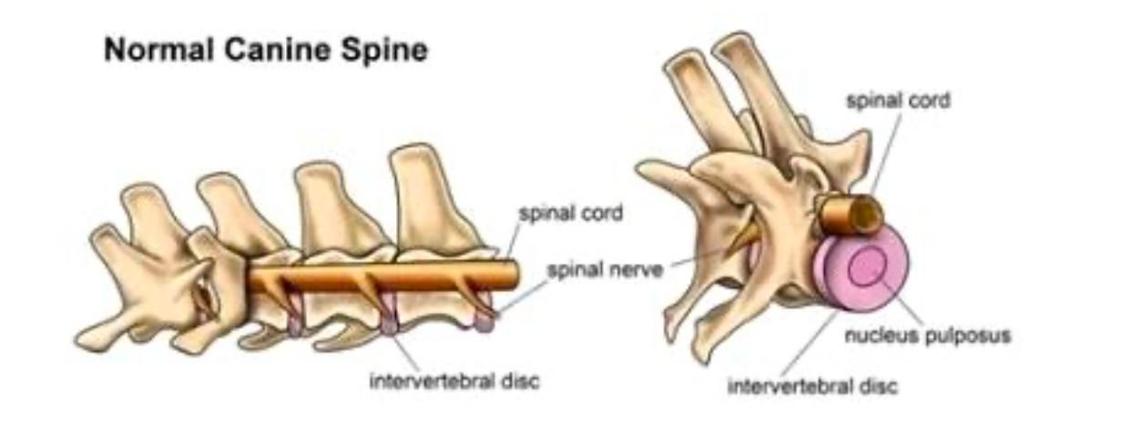 IVDD står for intervertebral disc disease (intervertebral disk sygdom). Den intervertebrale disk er puden mellem rygsøjlens hvirvler, hunde har 27 af disse (ikke inkluderet halen). De har en membran lignende skal og har normalt flydende indhold i midten.