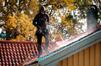 Vi skrapar bort mossan med skonsamma verktyg, mossan blåser vi sedan ner med lövblås. Vi tömmer hängrännor och byter eventuellt trasiga takpannor.