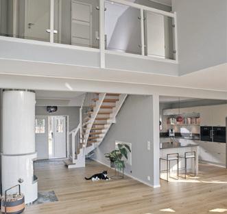– Ja vi har köpt ett modulhus och valt att göra klart delar själva eftersom min man är snickare och plattsättare. Bottenplan är klar förutom kakel och klinkers i badrum och kök. Hela övervåningen ska vi göra klart själva för att spara pengar. Vi har gjort ett tillfälligt rum däruppe så barnen kan vara där. Terrassen som när den är klar ska gå runt tre sidor, har vi gjort klart en del av så vi kan njuta lite utomhus även denna byggsommar.