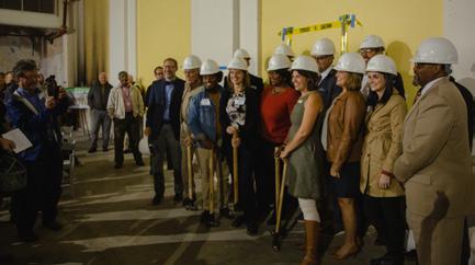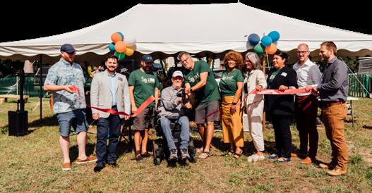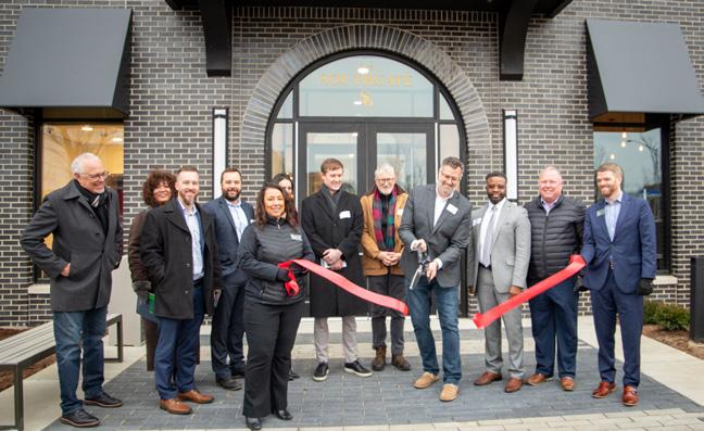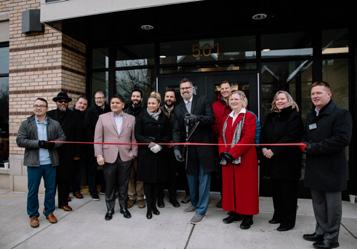 A ribbon cutting is held for the grand opening of Steepleview North and South, two mixed-use apartment buildings with 65 units total, including live-work units on the ground floor. Family Haven celebrates 30 years of serving families with emergency shelter and opens a new, 6th unit of housing.