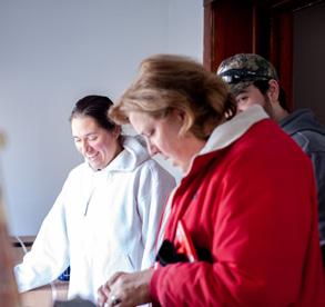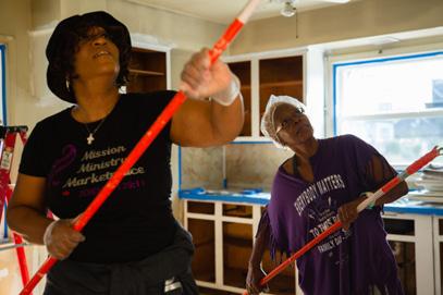 hanging them in the elevator so they wouldn’t be missed. She helps coordinate one of the weekly Bible studies, preparing materials and coordinating food.