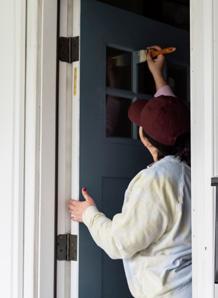 Starting her new life with very little, Latoya slept on the floor until she was able to acquire furniture. Nowadays she’s usually spending time in the kitchen, where she loves to cook up southern-style recipes learned from her mom and grandmothers, or sitting on her couch by the window. “I love my home,” says Latoya. “It’s a place where I don’t have to worry about anything; a safe place.” On the back of her front door are stickers that read “Patient,” “Gentle,” “Humble,” and “Loving”—the last thing she sees before leaving home.