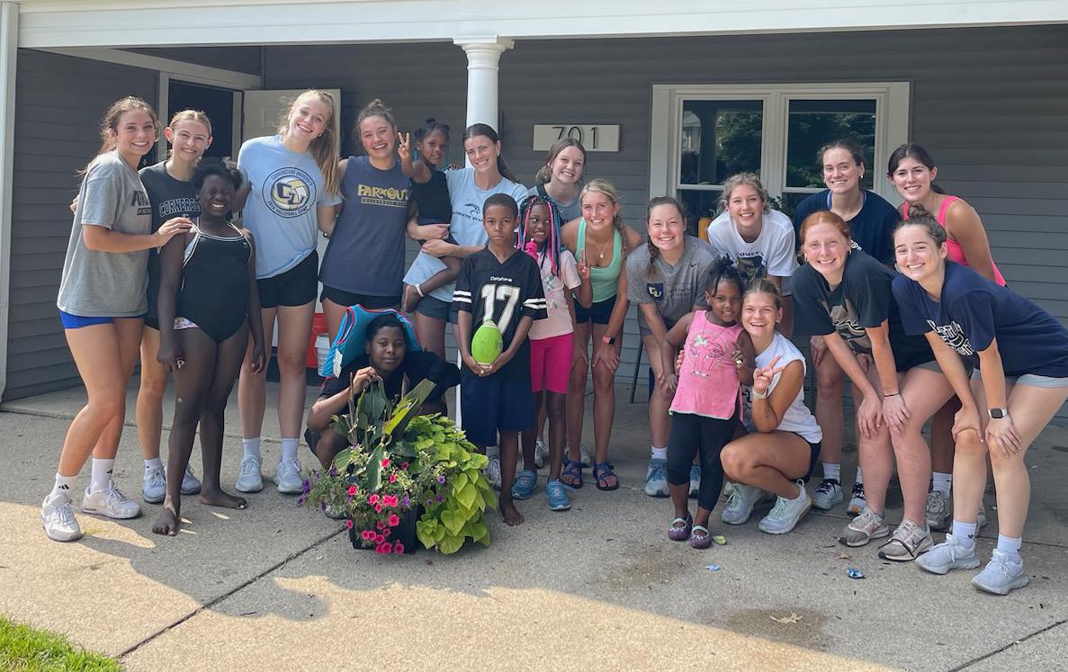 Teens Actively Serving Christ, CRC Serve, Thornapple Covenant Church, Ada Bible Church, St. Nicholas Greek Orthodox Church, and Fifth Reformed Church all had students serving with us this summer. The Rick Mahorn Big Man Basketball Camp and Cornerstone University Volleyball helped to make the playground at Family Haven safe by spreading several yards of mulch, hauling it over in buckets and wheelbarrows in 90 degree heat.