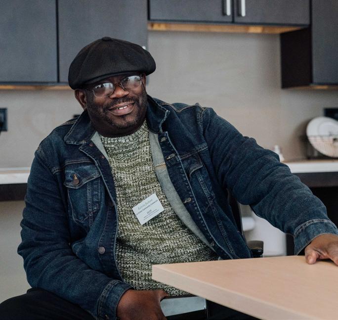 Lewis owns and operates a small business at ICCF’s Steepleview Apartments in one of six live/work units. His mission is to educate, create, and inspire people to healthier, happier lives through fitness and dance. The commercial storefront at Steepleview is connected to his onebedroom apartment. The building earned LEED Silver designation for sustainability efforts and also includes affordable housing for formerly homeless youth.
