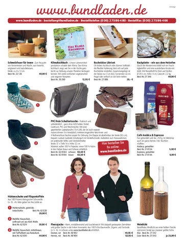 PVC-freie Schultertasche ¡ Praktisch und unbedenklich – ganz ohne AZO-Farben, Nickel, Cadmium, PVC und Weichmacher. Mit einer gepolsterten Laptoptasche (15,4 Zoll), die Sie auch separat nutzen kĂśnnen. Ein Handyfach, mehrere eingenähte Netz-Innen- und 4 ReiĂ&#x;verschluss-Taschen sorgen fĂźr Ordnung. Die Klappe ist abnehmbar, der breite (8,5 cm), bequem rundum laufende Schultergurt mit Verstellschnalle. AuĂ&#x;erdem zum Herausnehmen: ein praktischer Stifte- und Utensilienhalter. Breite 37 Tiefe 14 HĂśhe 32 cm. Hier bestellen Sie Material: auĂ&#x;en 100 % Polyester, innen 100 % Nylon. ďŹ x online: In den Farben Braun und Schwarz erhältlich. www.bundladen.de Best.-Nr. 62 018-A schwarz 65,50 7 Best.-Nr. 62 018-B braun 65,50 7