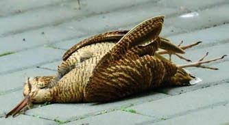 Diese Waldschnepfe starb wie schon Hunderte Vögel an einer Glasfassade des Berliner Flughafens BER; siehe BUND-Blog: umweltzoneberlin.de/vogelsterben Foto: BUND Berlin