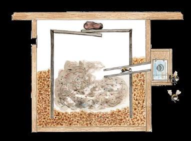 Geben Sie eine Schicht Kleintierstreu oder Sägespäne in den Kasten. Darauf eine Mischung aus trockenem, zerbröseltem Laub, Gräsern und Moos. Das Material dient dem Feuchtigkeitsabtransport.