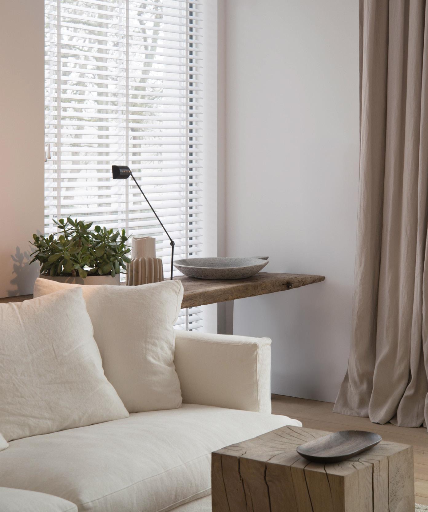 ● Verve Design ‘Lizelle’ tripod floor lamp, $151.98, I/N: 0261996 (globe sold separately). ● Smart Home Products ‘Urban’ 265cm x 220cm pencil pleat room darkening curtains in Linen, $99.95/pack of 2, I/N: 0376486‡. ● Fluffy Ruffles Boston fern in Borralheira ‘Two Tone’ 130mm x 120mm indoor ceramic pot in Green, $14.98, I/N: 0588211 (plant sold separately). ● Verve Design ‘Amalfi’ ceramic table lamp, $65.48, I/N: 0361137 (globe sold separately). ● Mimosa ‘Butterfly’ wicker chair, $179, I/N: 0098280. ● Jute ‘Bali’ 290cm x 190cm rug in Natural, $299, I/N: 0078717. ● Senso by Gerflor ‘Essential’ 3m DIY vinyl flooring sheets in Noma Blond, $65.71/m, $21.90/sqm, I/N: 6610233.