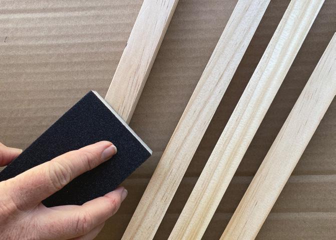1 Lightly sand the plywood panel and the pine in the direction of the grain, then wipe away all sanding dust.