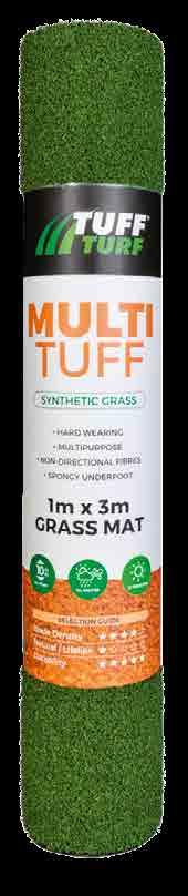 If you’re looking for a durable childand pet-friendly landscaping solution to lay underneath kids’ playgrounds or in pet zones, Tuff Turf K9 Tuff 25mm Pile Synthetic Turf is a medium-pile grass that’s soft underfoot, has an antibacterial backing and can easily stand up to a rough-and-tumble lifestyle. Combine it with the natural formula of Tuff Turf 500ml Synthetic Grass Deodoriser to remove pet odours and keep your Tuff lawn smelling fresh.