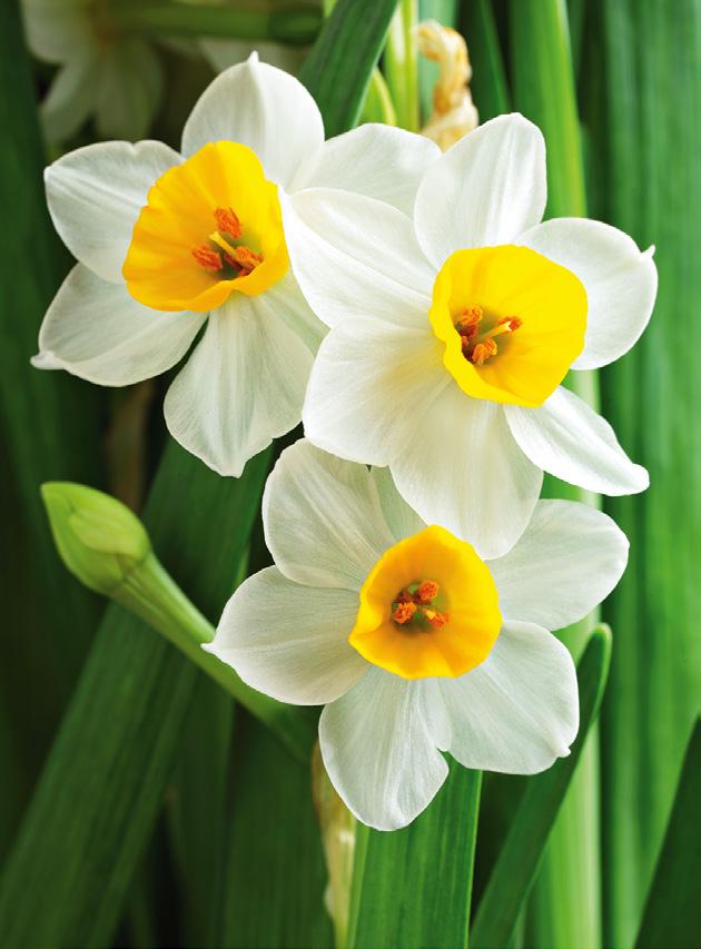A close relative of the daffodil, jonquils are distinctive for their sweet fragrance and clusters of small blooms with a white or orange central cup surrounded by yellow or white petals. They make beautiful cut flowers and are suited to all except tropical climates.
