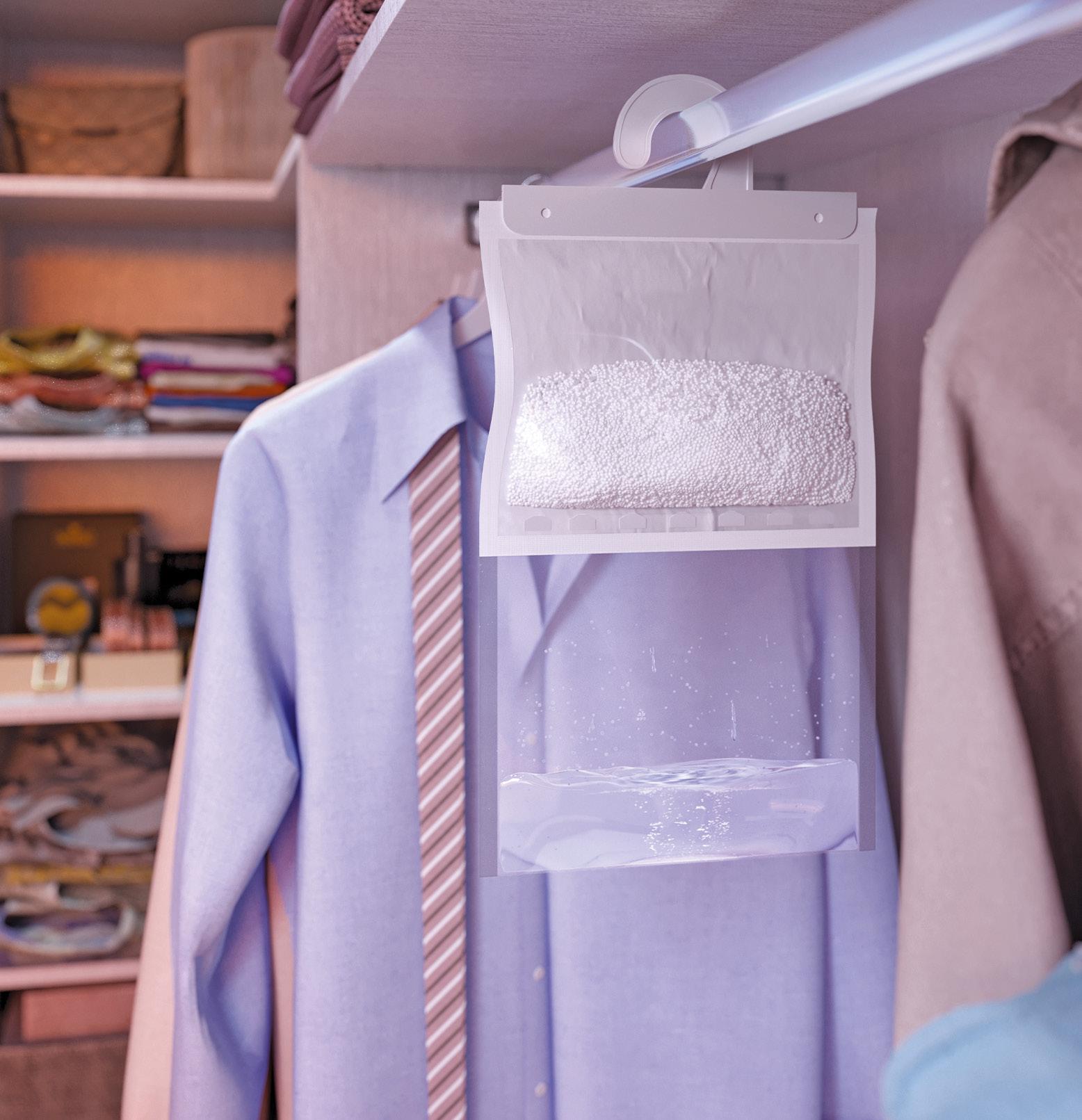 The DampFree hanging pouch is designed for wardrobes, helping keep garments fresh in enclosed spaces