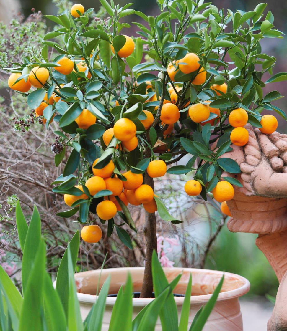 Dwarf ‘Encore’ fruit is firm-fleshed and easy to peel with a super-sweet flavour. A prolific producer from December to March, it’s also known for being resistant to pests, diseases and cold. Growing up to 1.5m tall and wide, it’s excellent for containers or small gardens. The seedless, sweet and popular dwarf ‘Satsuma’ is a hardy tree that’s easy to look after and fruits from May to July.