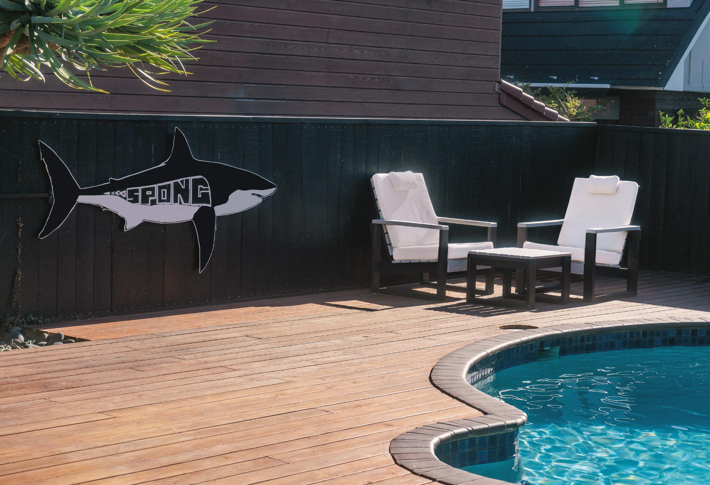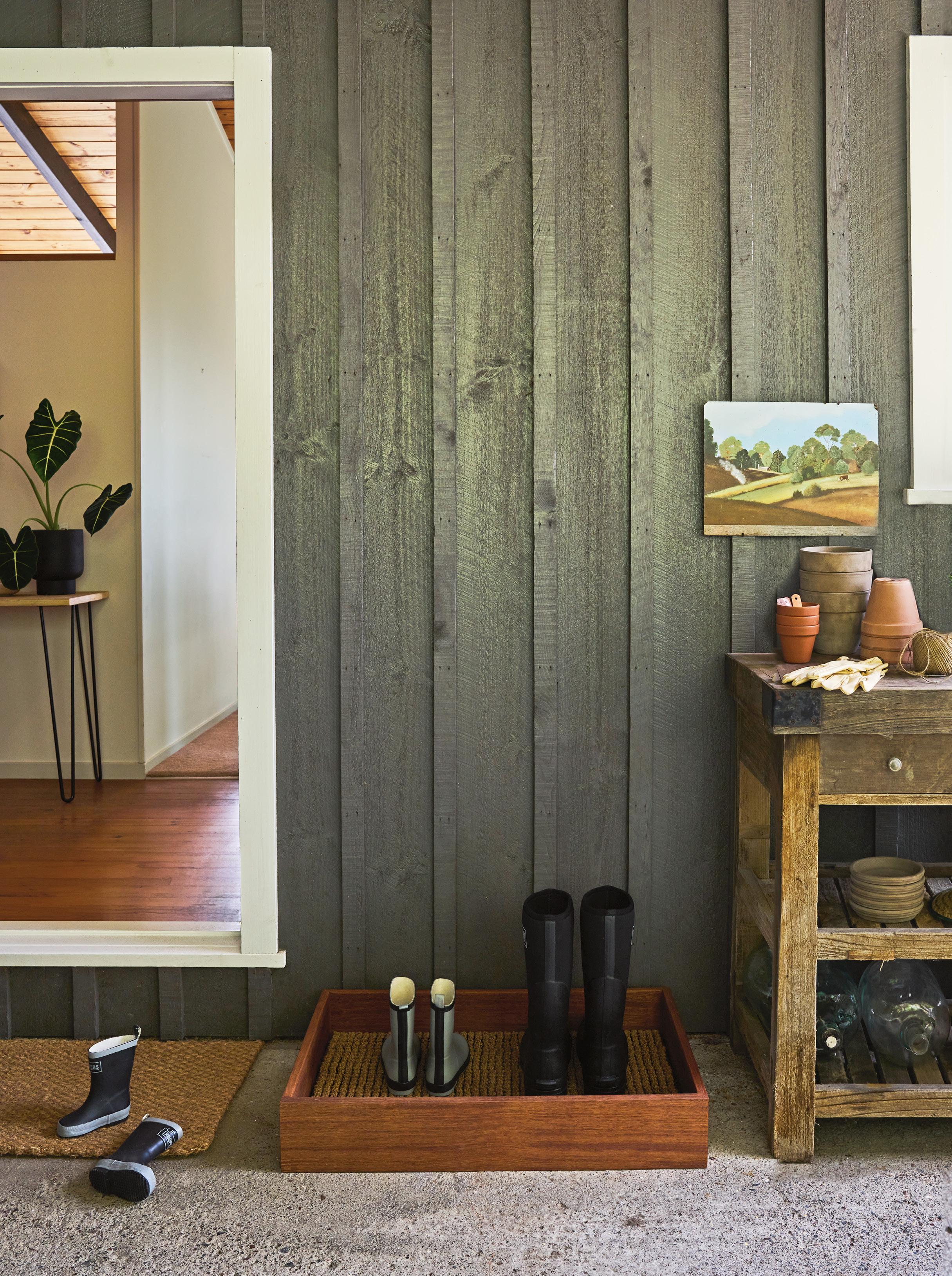 TOP LEFT ● SpecRite 140mm x 19mm pre oiled select grade smooth kwila decking, I/N: 0200173• ● Doormat, for similar try Axton ‘Cordoba’ 900mm x 600mm jute mat in Natural, $44.75, I/N: 0047663. ● Home Bazar ‘Palermo’ timber stool, $99, I/N: 0533746 (store stock may be limited). Some products are not available at all Bunnings stores, but may be ordered.