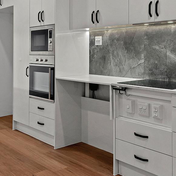 Our range includes kitchen sinks, tapware and handles to meet SDA requirements, custom cabinetry with an install option, adjustable benchtops and stainless-steel options for Robust builds.