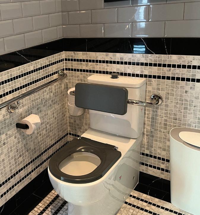 Aesthetically pleasing lever taps or sensor based taps may assist those with limited hand strength dexterity, while a toilet with appropriate height and support is designed to help people with different mobility requirements.