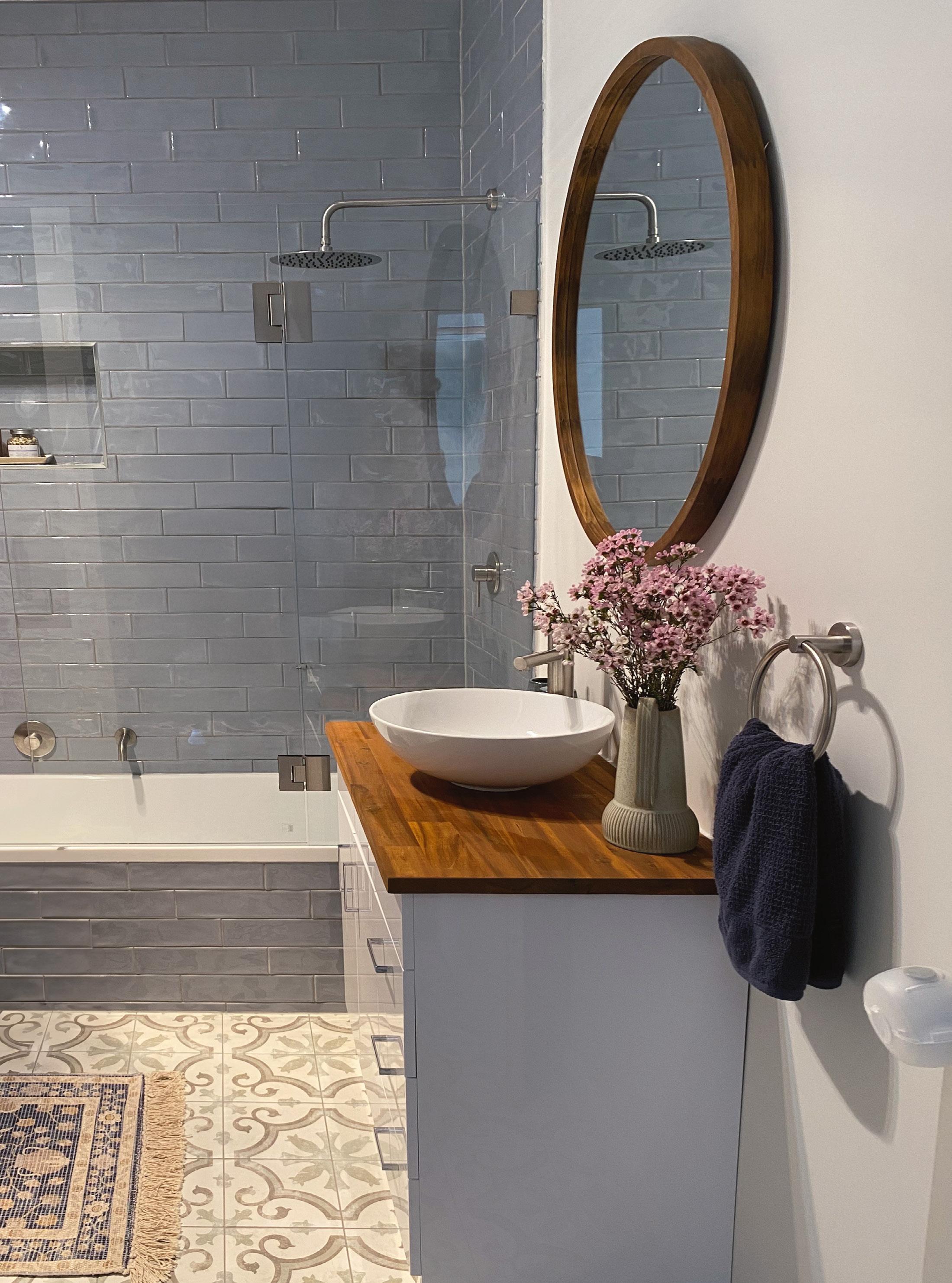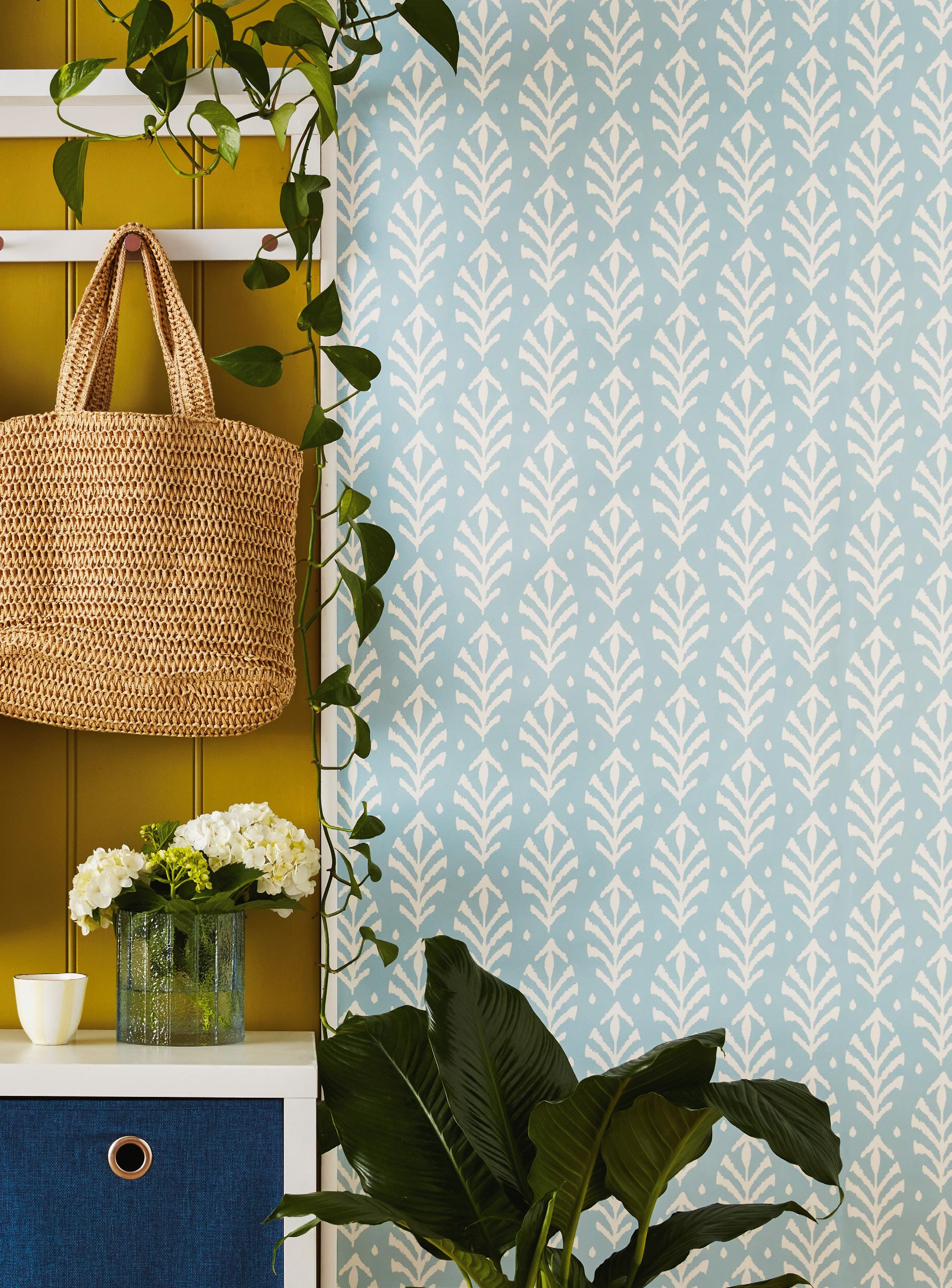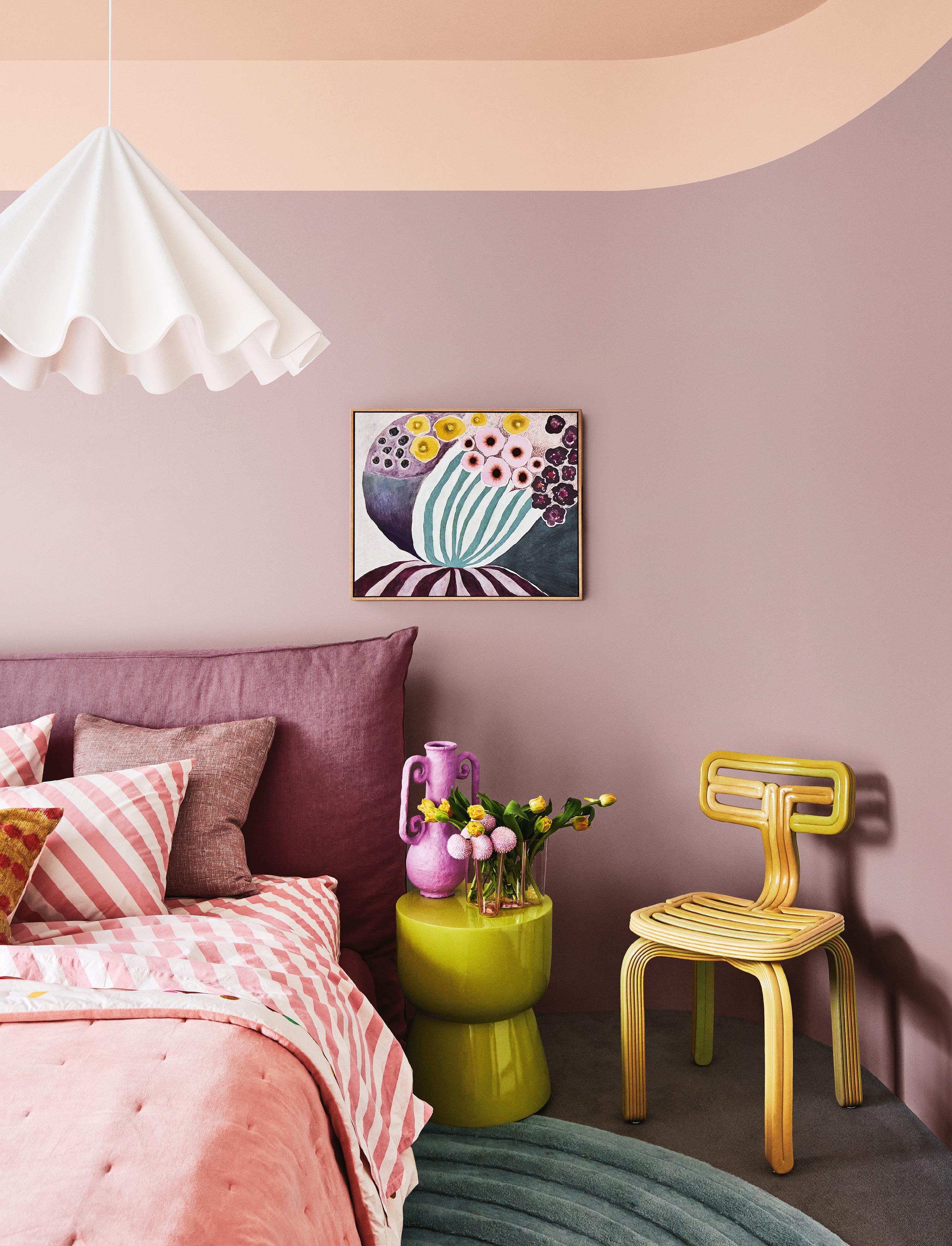 double slot back wire shelves B, $22.62 each, I/N: 2660969, 1200mm x 250mm x 16mm matt shelves, $16.19 each, I/N: 2710157, hanging rod brackets, $7.13/pack of 2, I/N: 2660995, 170mm double slot brackets, $3.92 each, I/N: 2583643, 350mm double slot angled wire shoe shelf brackets, $10.11/pack of 2, I/N: 2610019, mesh 3 basket frame kit, $122.27, I/N: 0168744, 572mm x 200mm pegboard backing plate, $17.30, I/N: 2583303, all in White; 1800mm stainless steel hanging rod, $22.76, I/N: 2662033, and stainless steel hanging rod end covers, $2.89/pack of 4, I/N: 2663662. ● Flexi Storage ‘Clever Cube’ 760mm x 410m x 390mm 1 x 2 storage unit in White, $43, I/N: 2583382 (used as a bedside table), 1 x 2 cube storage desk in Oak, $140, I/N: 0125526†, 376mm x 335mm x 335mm 2 drawer insert in Oak, $35, I/N: 0079582, and 370mm x 330mm x 330mm inserts, $9.97 each, in Sandy White, I/N: 2583443, and Blush Pink, I/N: 0082385. ● Porter’s Paints ‘Dandelion’ 61.5cm wallpaper in Celadon Green, $195/10m, I/N: 0311665†. ● Verve Design ‘Lizelle’ tripod floor lamp, $119.98, I/N: 0261996. ● Practa timber clothes hangers with bar, $4.99/pack of 5, I/N: 0484052. ● Devil’s ivy in 14cm x 12cm glazed indoor cache pot in White, $3.98, I/N: 0033500. ● Bayliss ‘Cortina’ 290cm x 200m wool rug, $419, I/N: 6670903. ● Senso by Gerflor ‘Essential’ 3m DIY vinyl sheet flooring in Noma Blond, $78.99/m, I/N: 6610233. ● Happy plant in Scheurich ‘Vander’ 24cm x 22cm pot in White, $35.98, I/N: 2891240. All plants sold separately. All other products, stylist’s own. Some advertised services and products are not available at some Bunnings stores, but products can be ordered.