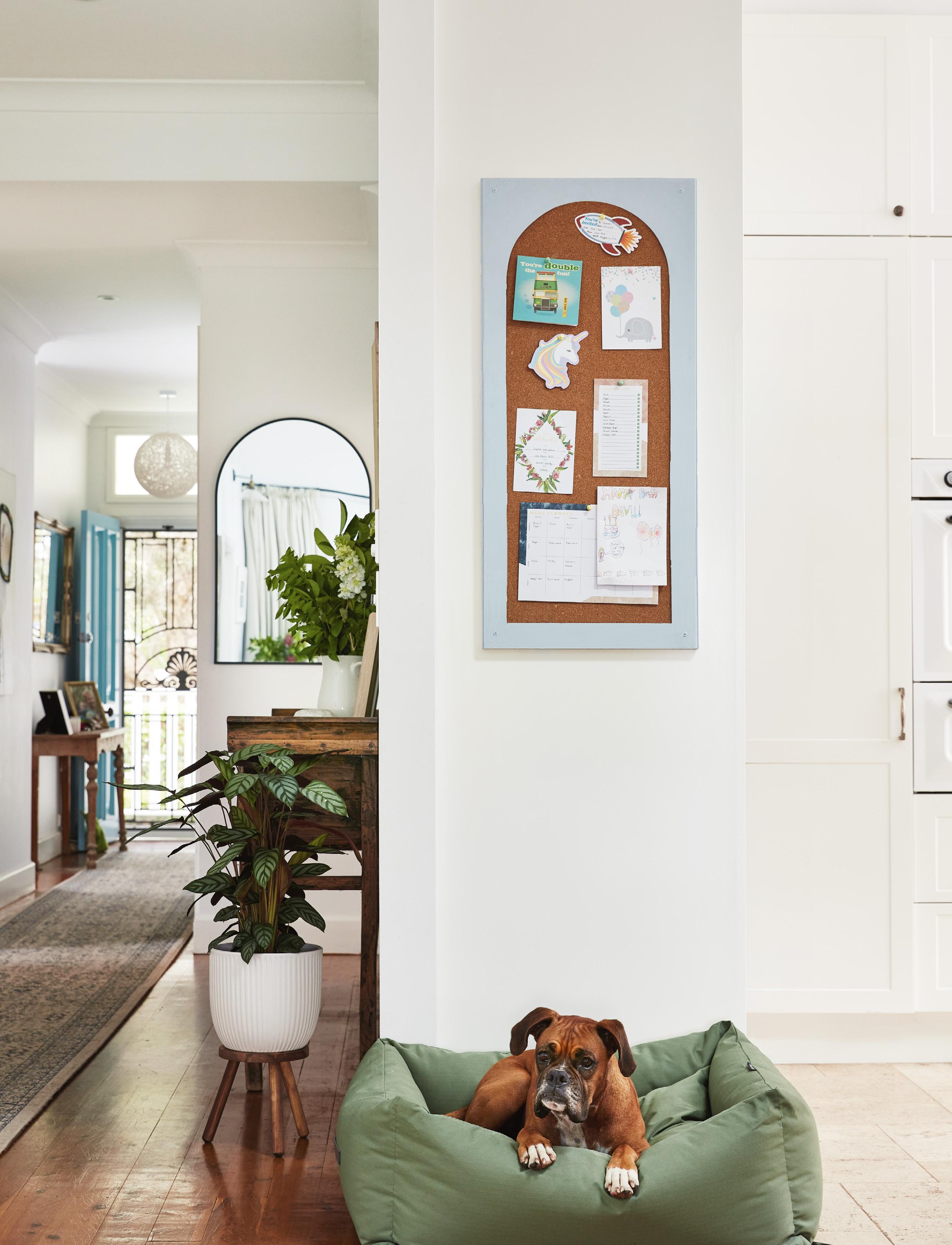 ● DIY arch pinboard made using: Project Panel 1200mm x 810mm x 3mm premium BC grade pine plywood panels, $18 each, I/N: 0340268•; Ultimate Flooring 1m x 1m x 10mm home gym rubber tile in Black, $34, I/N: 0522633; Sika ‘SikaBond’ timber flooring adhesive, $14.90/600ml, I/N: 6824507; Metal Mate 20mm x 20mm x 3mm aluminium equal angle in Silver, $47.56/3m, I/N: 1079543; Zenith 8G x 20mm countersunk rib head chipboard screws, $6.34/ pack of 100, I/N: 2408391; British Paints ‘4 In 1 Prep’ water based primer sealer undercoat in White, $9.90/100ml, I/N: 1420370; Dulux sample pot paint in Puhoi Half, $11.50/250ml, I/N: 1409312; and Everhang 10kg picture hanging kit, $7.88, I/N: 3930467. ● Baxter Bone ‘Ripstop’ water resistant large outdoor pet bed with removable covers, $139, I/N: 0561750. Some advertised services and products are not available at some Bunnings stores, but products can be ordered.