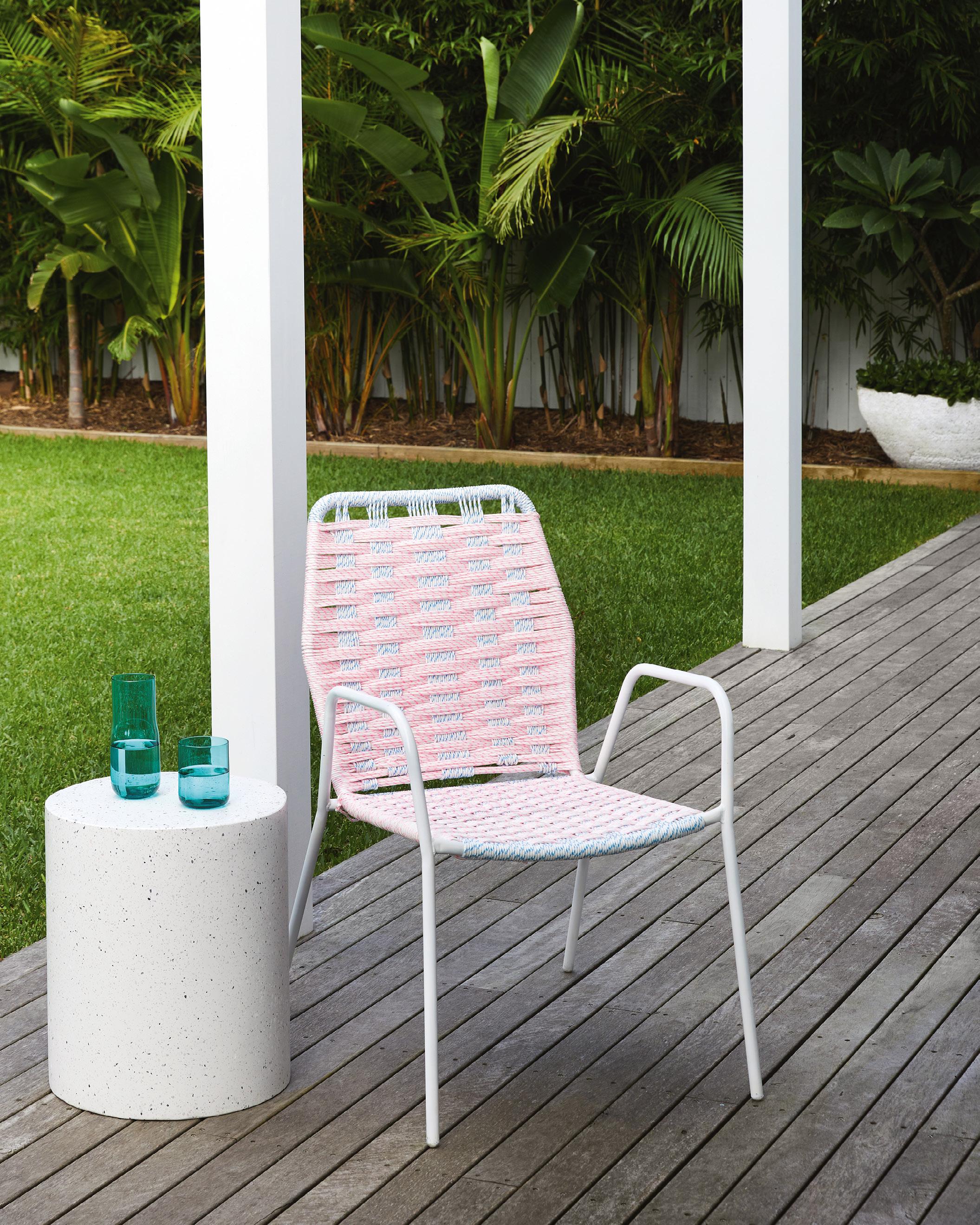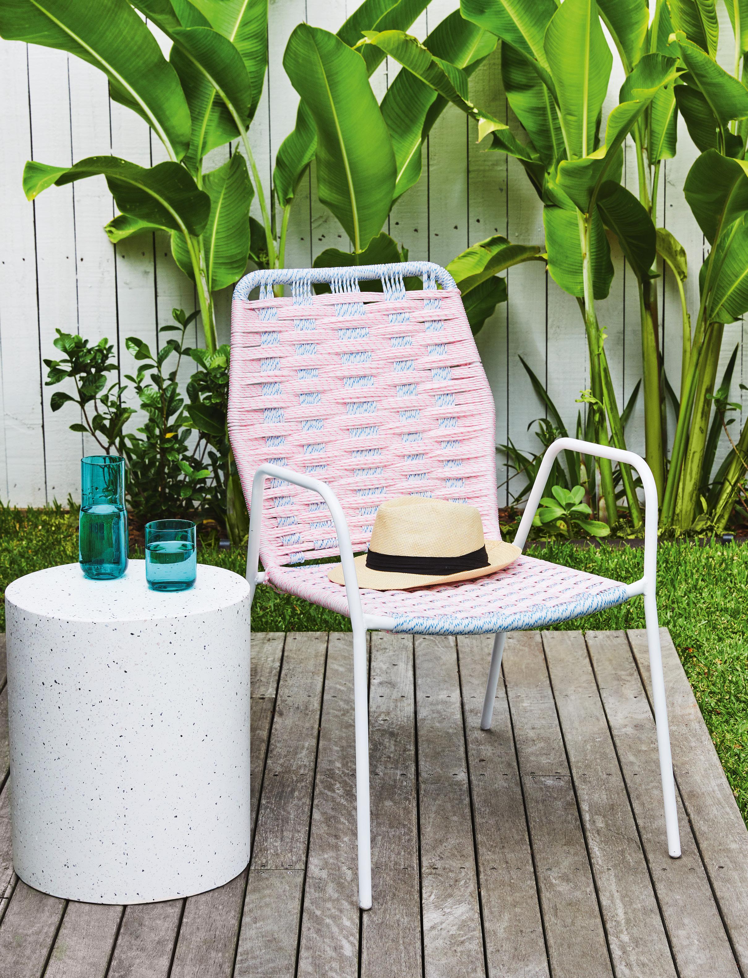 ● Woven chair repaired using: Dy-Mark ‘MetalPro’ primer spray in Grey, $15.72/350g, I/N: 1580552, and quick dry high gloss enamel spray in White, $13.94/300g, I/N: 0174725; Grunt 4mm tracer rope in White with Pink and White with Blue, $4.60/10m (we used three packs of each colour), I/N: 4310357. Some advertised services and products are not available at some Bunnings stores, but products can be ordered.