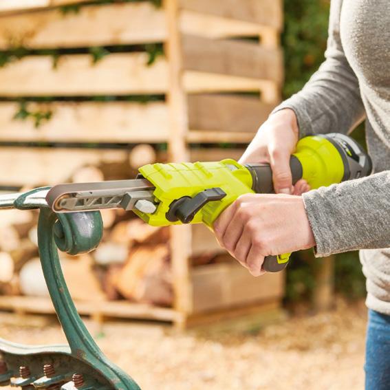 Improve your pruning prowess with batterypowered secateurs. This tool makes clean, crisp cuts – up to 1000 per battery charge – on both green and tougher brown material, so you can use it all over the garden. ●
