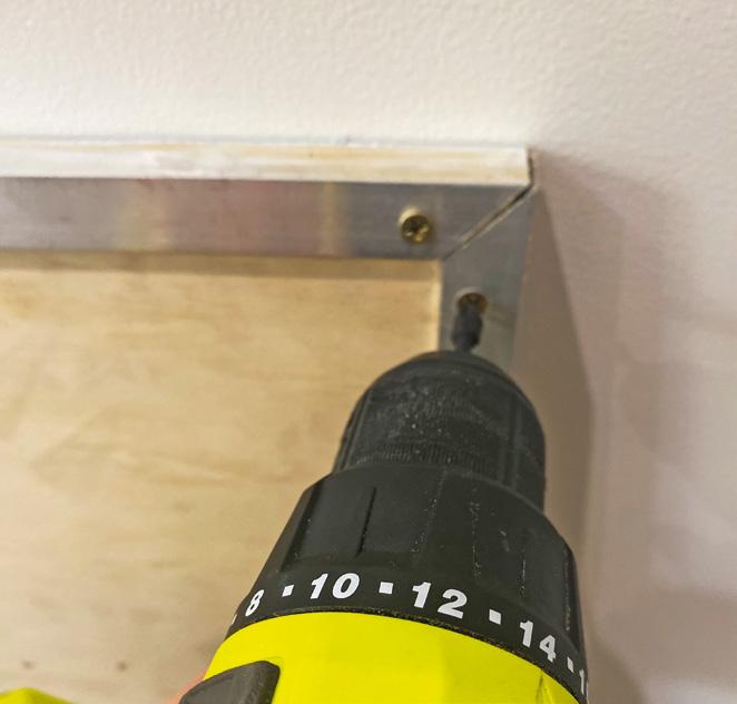 5 Use a mitre saw to cut two 456mm and two 1006mm lengths of aluminium angle with mitred ends. Sand cut edges. Arrange frame pieces on the rear of the backing board. Mark 20mm from all corners, use a 3mm countersink bit to drill holes at 200mm intervals and attach frame with 8G screws.