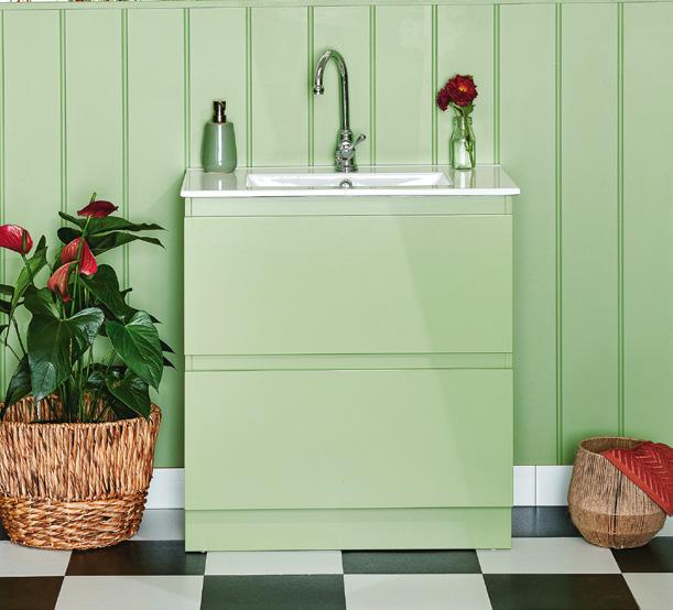 ABOVE Innovative upcycling of a vintage cabinet by Claire (Bunnings Workshop community member @renowayoflife) resulted in a unique – and very useful – bathroom vanity