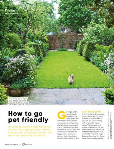 How to go pet friendly It’s easy to create a safe haven for all your four-legged friends. Here’s how to craft an outdoor space that works for the whole household