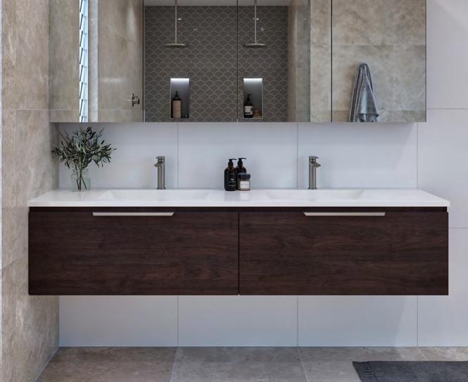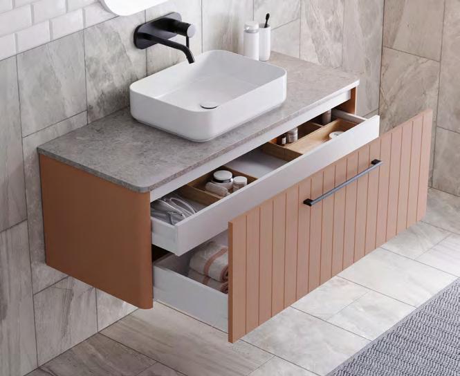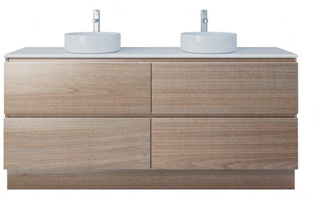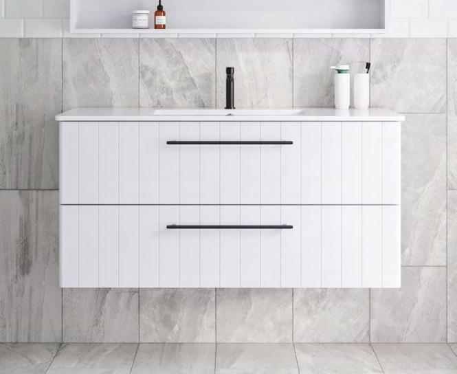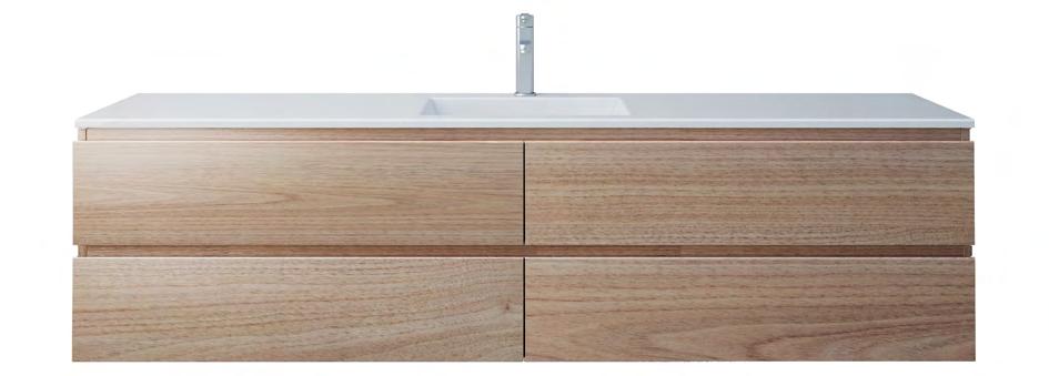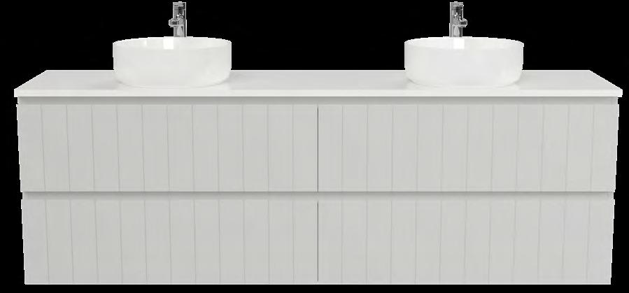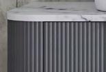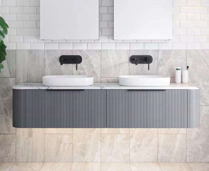 The Throne vanity offers graceful curved ends and a fluted front. The wall hung design continues its contemporary look, whilst the all-drawer layout provides generous storage space. Throne expands to a two-drawer layout from 1,500mm and above.