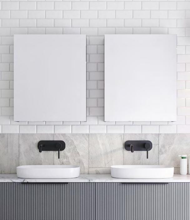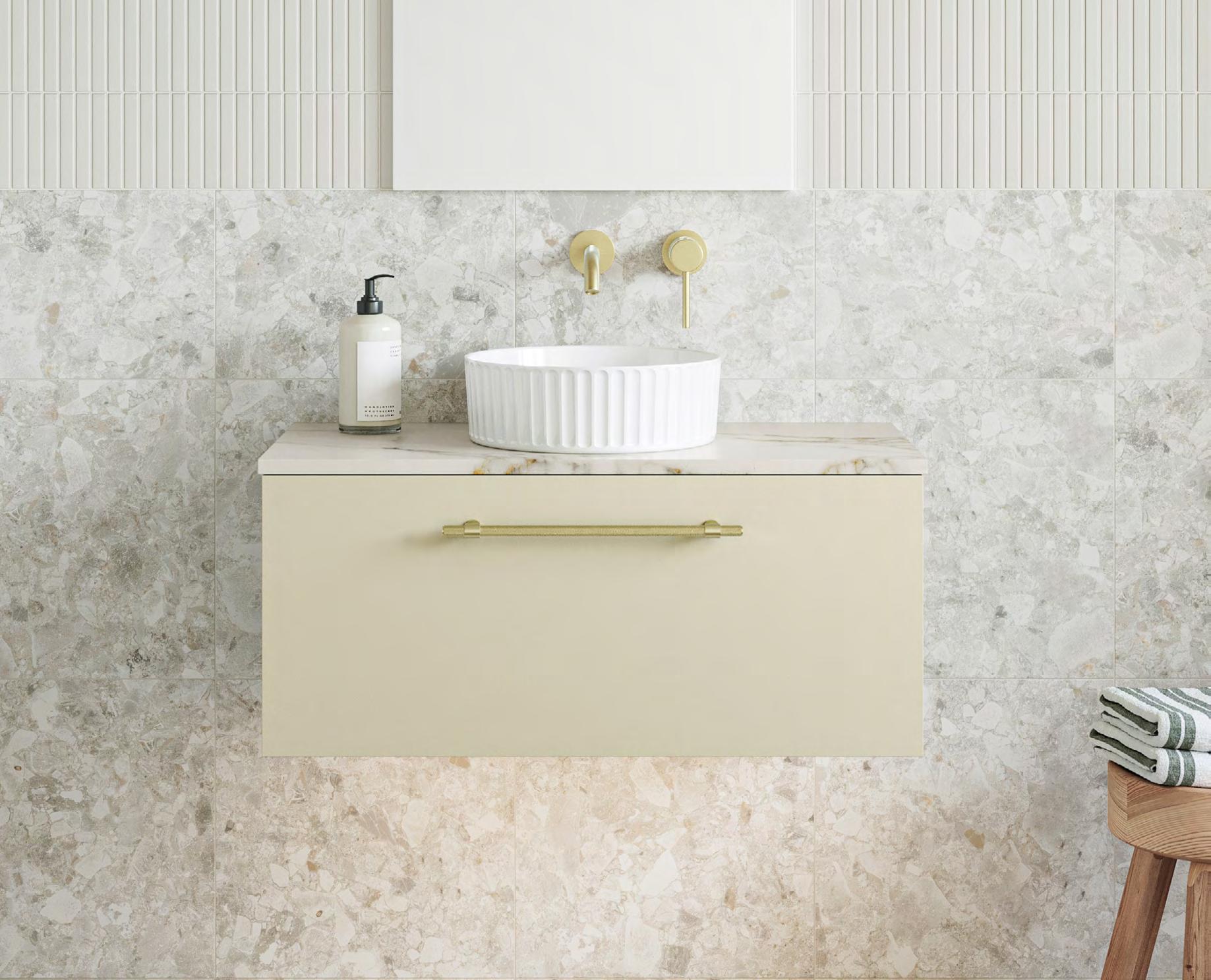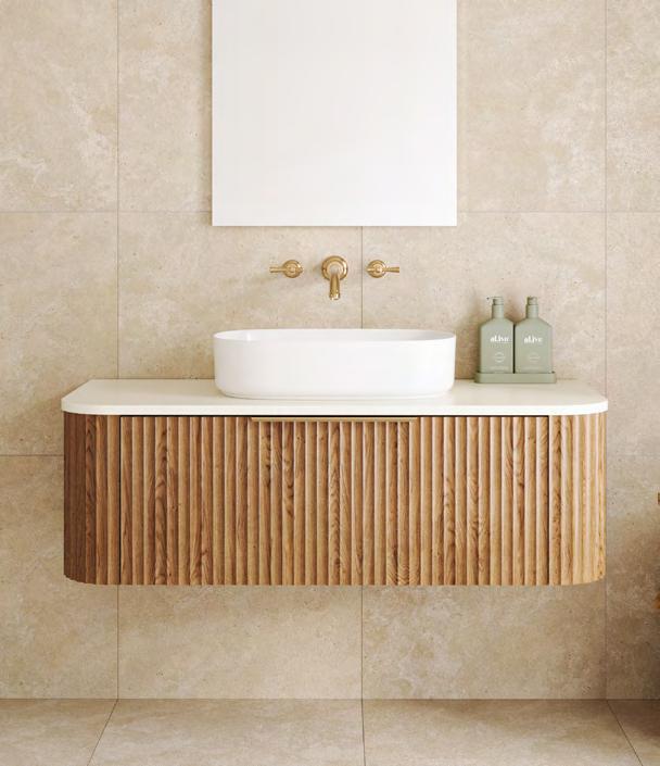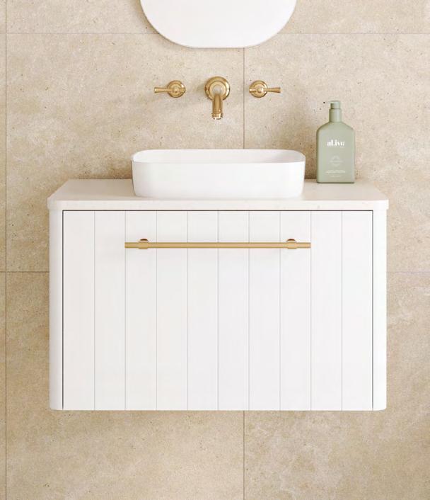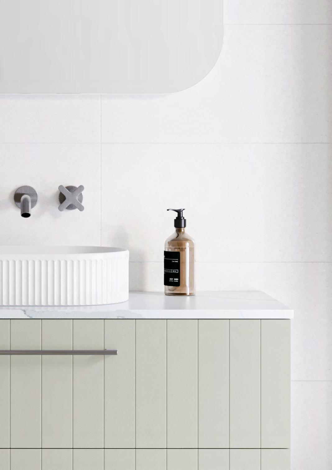 Tip: Fluted vanities are a great way to add subtle texture to your space.