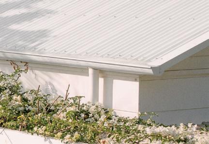 Roof sheeting, gutters, downpipes, ridge capping, imitation brick cladding and lining under eaves.